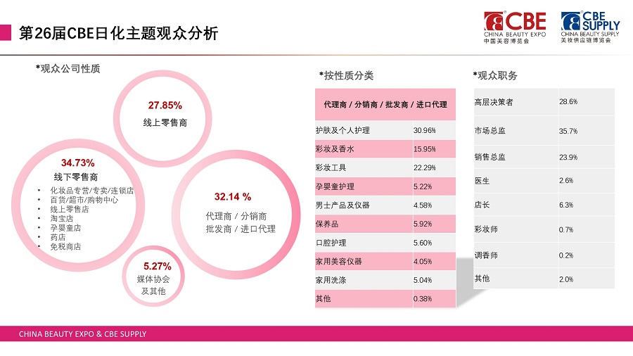 专业线展区:专业美容产品/高端美容品、美容仪器及设备、美甲美睫纹绣、美牙护目、国际大健康、医学美容/功效护肤、皮肤管理及整店输出