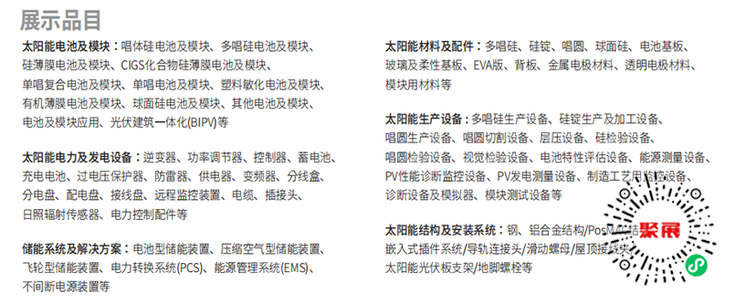韩国太阳能光伏及新能源展览会展品范围
