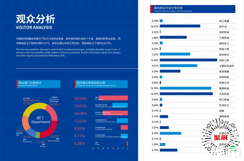 苏州机床展览会已成为华东区域最具影响力的高端装备工业会展标杆。同时,来自机床工具、3C电子、机械加工、轻工机械、纺织机械、冶金机械、石油化工、医疗器械、航空航天、汽车制造、船舶工程等应用行业比重超93.31%。