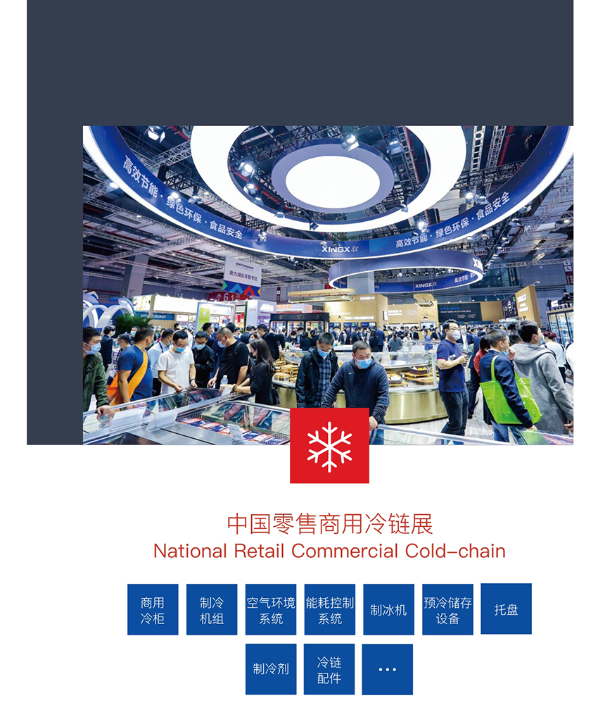 中国零售商用冷链展:商用冷柜、制冷机组、空气环境系统、能耗控制系统、制冰机、预冷储存设备、托盘、 制冷剂、冷链配件等