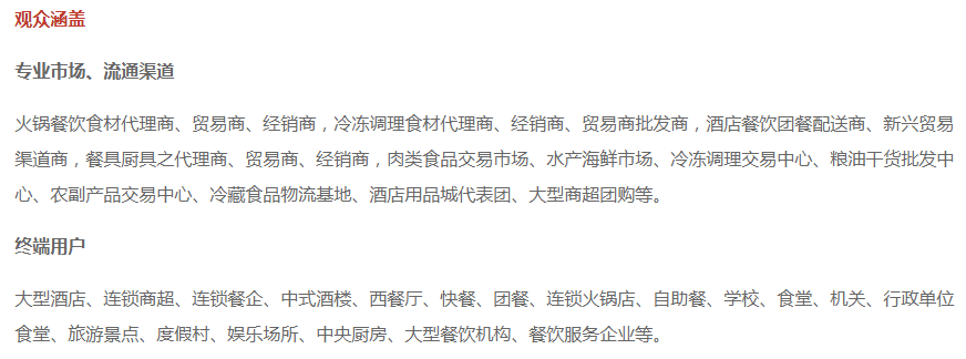 借助互联网,精准定位专业受众,打造一站式火锅食材采购。中国火锅展整合各方的实力和优势,以全新的经营理念和优质的服务,将中国火锅展打造成一个集投资、技术合作、产品推广、品牌建设、学术交流为一体的平台,打造具有相当影响力的火锅行业盛会。