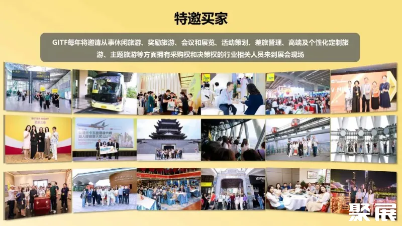 GITF2023邀请了100+专业观众组团及大量特邀买家到场与展商深度互动,共享交流交易平台。报名成为展商,您将享受GITF深耕旅业31年累计下来的丰富行业资源、超过200家合作媒体报导展会内容,拓宽您的宣传渠道 以及为您提供一系列24025宣传推广机会,提高您在展会中的推广形象。