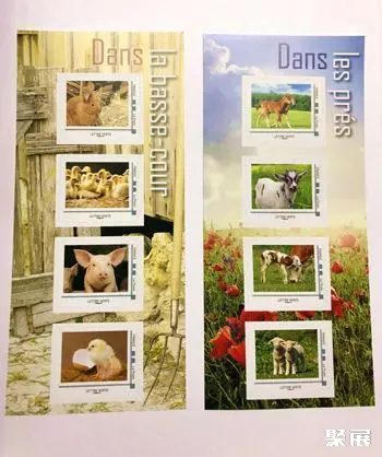 法国邮政当天发行的农博会特种邮票,一套8枚,分为两个小全张印制。