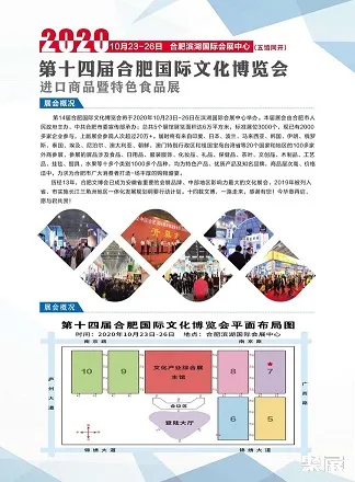 合肥第十四届文博会同期食品展以“探索文旅融合新路 激发文化旅游活力”为办会宗旨,按照“国际视野、产业发展、创新创造”的办展思路,全面展示旅游业的文创新品、新成果、新业态,进一步加强交流、密切合作、携手打造文创精品,加快产业融合,推动旅游商品的创新发展,为全国文旅产业的发展作出积极的贡献。