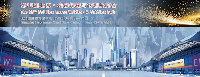 第25届北京·埃森焊接与切割展览会定于2021年6月16-19日上海新国际博览中心中心举办,敬请关注。