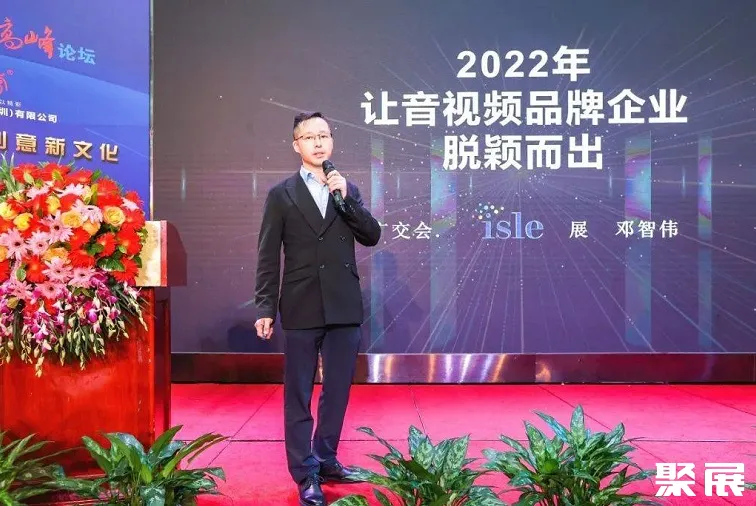 借此机会,ISLE总监邓智伟也上台与大家一起深度剖析行业未来发展趋势,并为大家分享《2022年让音视频品牌脱颖而出》的主题报告。他表示,作为商务部广交会集团旗下专业展会,ISLE提供的不仅是一个贸易平台,更是提供智慧会展平台解决方案以及企业营销推广获客的渠道。