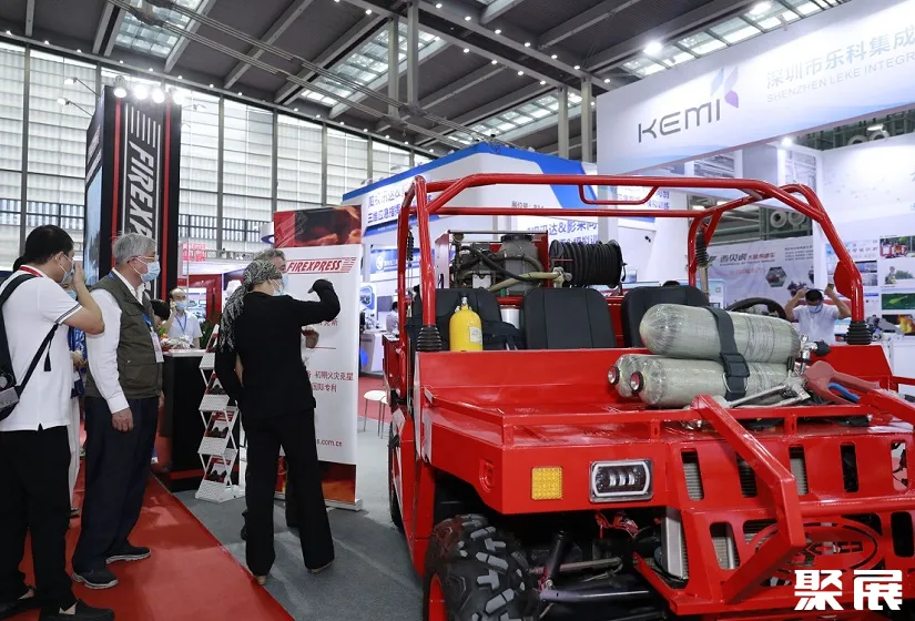 消防装备展区:消防车辆、个人防护装备、抢险救援器材、呼吸器、消防炮、缓降设备等产品