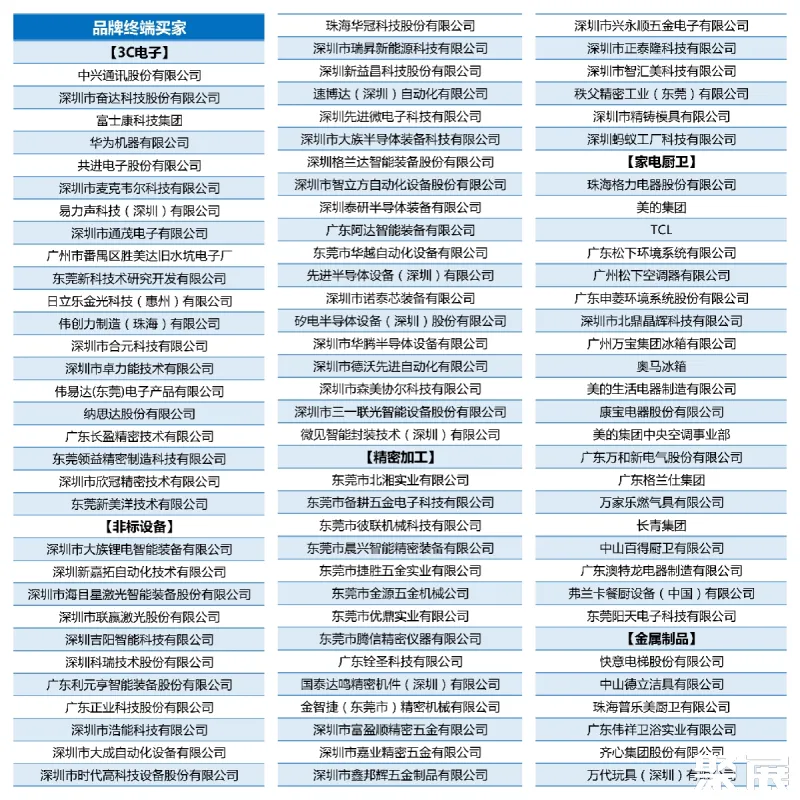 九大应用行业:3C、非标设备、精密加工、家电厨卫、金属制品、汽车及汽车零部件、新能源汽车及零部件、医疗器械、模具制造。