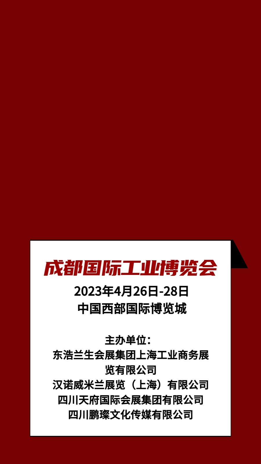 2023成都国际工业博览会(简称“成都工博会”)定档于2023年4月26日-28日在中国西部国际博览城举办。