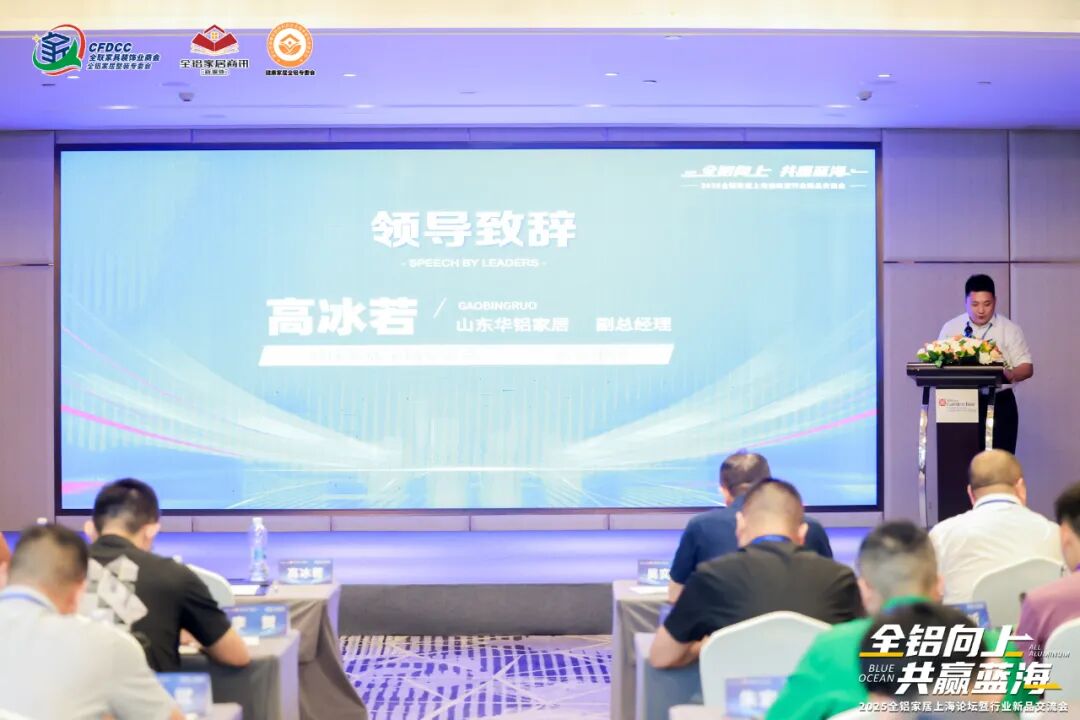 西南铝全铝家居董事长林大福上台致辞。林总表示,全铝家居符合国家政策需求,正在向上增长,充满了市场活力,我们每个人都是其中的积极分子,推动着行业发展。此次论坛在上海举行,正好西南铝全铝家居在上海也有一个600平方的旗舰店,欢迎大家有机会前去参观。2025年,西南铝也努力发展,内部完成了智能生产线的落地,大大提升了生产效率。外部除了参加各类展会和活动之外,还赞助了大学生篮球比赛,积极对外推动全铝家居的应用,取得了良好的成效。展望未来,希望全铝家居同仁不要气馁,保持积极心态,让全铝家居更好更快地发展。