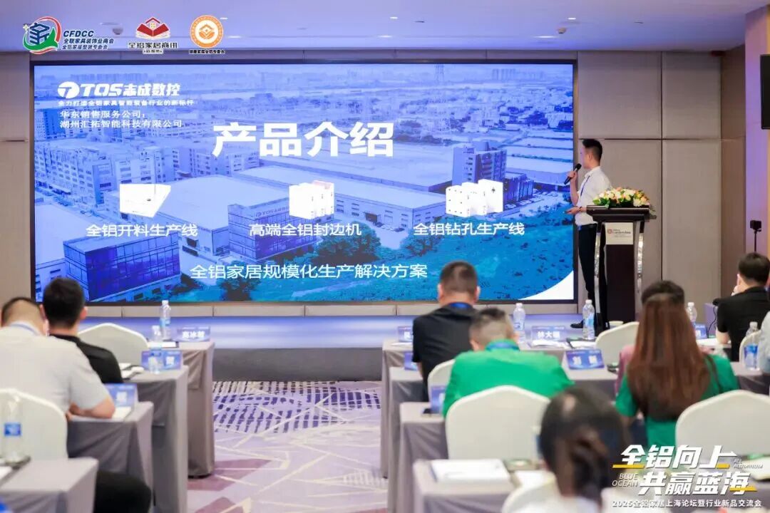 此外,6家企业纷纷上台分享了公司的最新产品,包括锐诺数控的“焊接铝板钻切铣一体机”、东意蜂窝板的“不锈钢蜂窝板及NCT饰面介绍”、志成数控的“全铝家居规模化生产解决方案”、准发机械的“第三代六面无缝激光焊接封边机”、耐斯克五金的“全铝灯光收纳系统”、画图大师的“全铝家居阳台柜拆单软件”等。