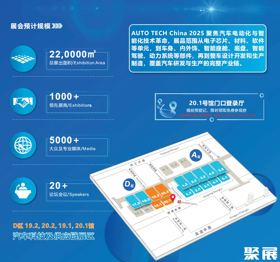 AUTO TECH China经过多年的发展和完善,已经成为汽车前装领域不可多得的专注于技术和贸易的展览会,成功吸引了上千家国内外知名品牌参展。本届汽车技术展以“绿色出行,科技创新 ”为主题,坚持技术引领科技,技术推动产业发展,为中国汽车产业新四化和走向世界贡献力量。