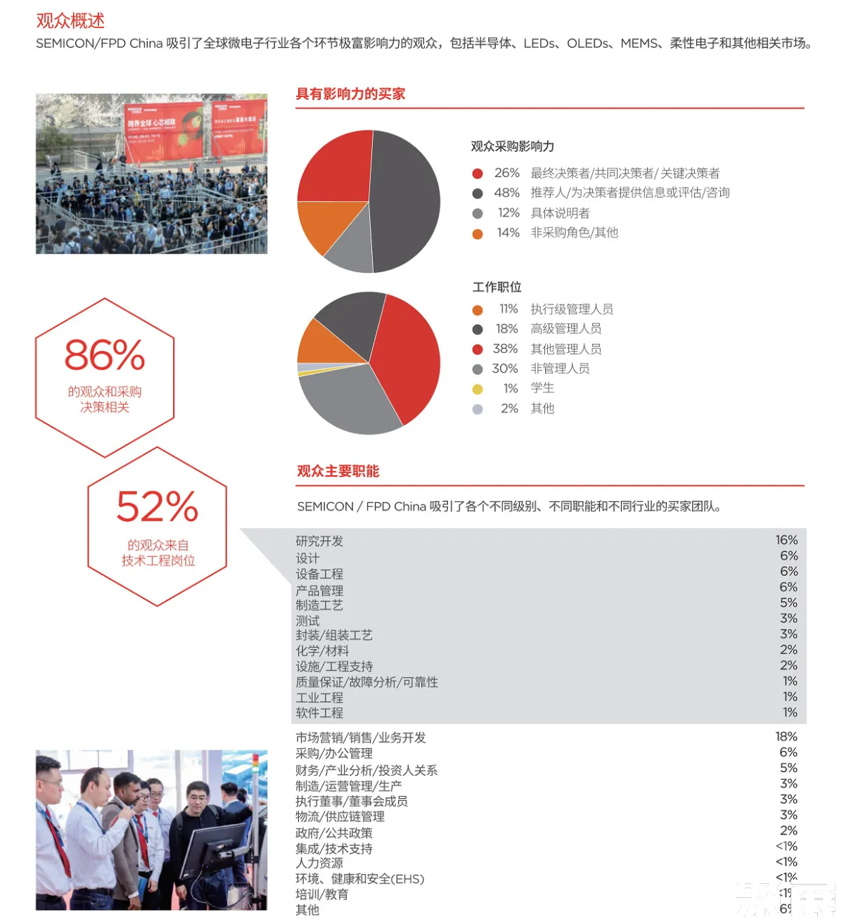 上海国际半导体展(SEMICON China)是SEMI为中国乃至全球半导体产业链上下游交流合作而打造的首选平台。结合中国半导体产业特点和全球半导体产业发展趋势,包括了五大主题展区:IC制造专区、化合物半导体专区、芯车会专区、Micro-LED专区和SEMI中国英才计划专区。