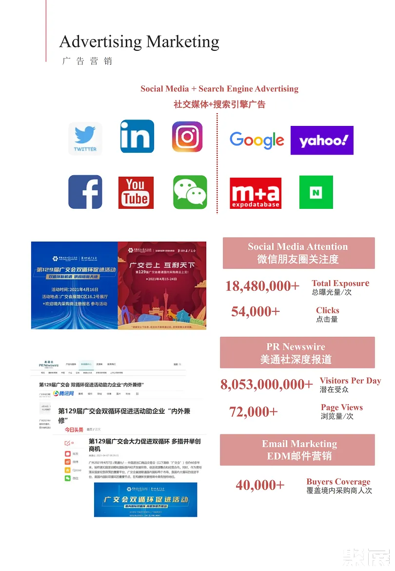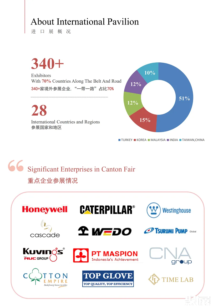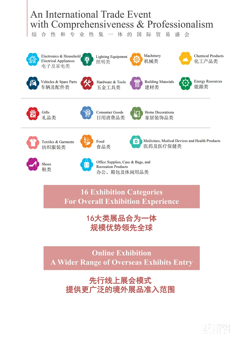 广交会一期-CANTON FAIR贸易方式灵活多样,以出口贸易为主,也做进口生意,还可开展多种形式的经济技术合作与交流。上届展会总面积850000平方米,参展企业42659家,参展人数达692013人(国外采购商192013人);以及商检、保险、运输、广告、咨询等业务活动。