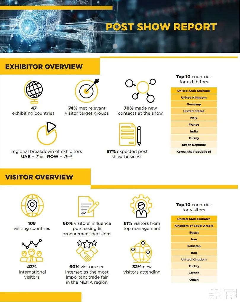 中东迪拜安防及消防展览会(INTERSEC)将迎来超过1400家参展商以及来自60多个国家的50000+专业观众。为满足持续增长的国际参与度,展会将新增两大展馆,展览面积扩大近12000平米,同比增长13%,总规模达67000平米。