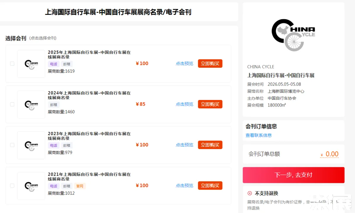 选择需要的名录版本:选择展商名录版本并完成支付。