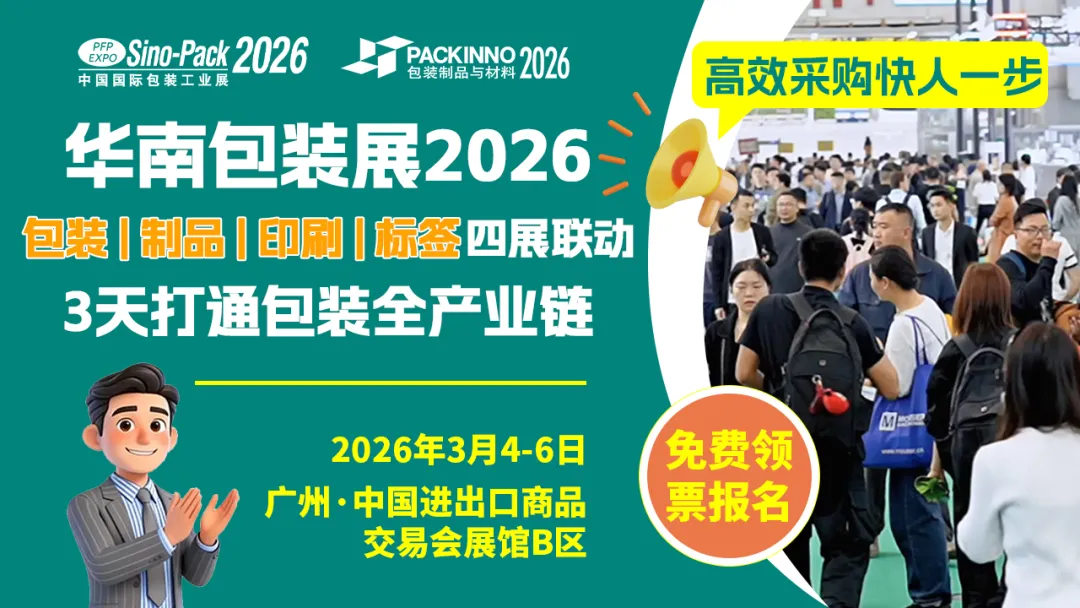 答案与机遇,尽在2026年3月4日至6日,于广州·中国进出口商品交易会展馆B区盛大举办的第三十二届中国国际包装工业展览会(Sino-Pack 2026)暨2026中国(广州)国际包装制品展览会(PACKINNO 2026)(以下称为Sino-Pack/PACKINNO华南包装展)。