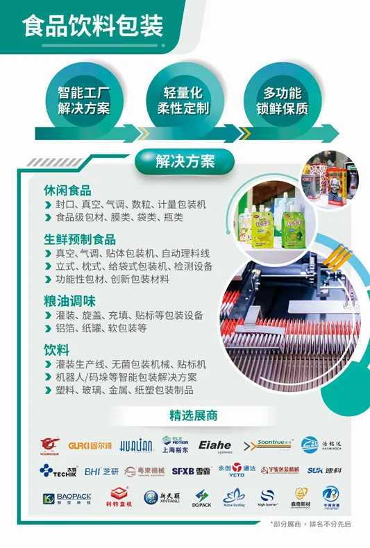 展会深度聚焦食品饮料核心领域,针对不同细分场景,呈现从生产线到终端的完整包装解决方案: