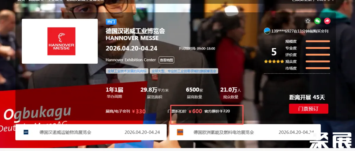 汉诺威工博会、德国工业展2026门票购买渠道+门票预定指南-聚展