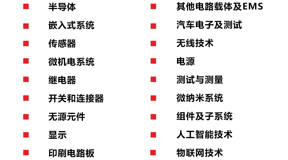 展会汇聚国内外优质电子企业加入,打造从产品设计到应用落地的横跨产业上下游的专业展示平台。展示领域紧跟行业重点,并根据行业实时热点融入新的展示领域,涵盖新能源汽车、智能汽车、绿色能源、智能工厂、物联网+、智能可穿戴、工业互联网、无线通信、数据中心、智能家居等技术话题。