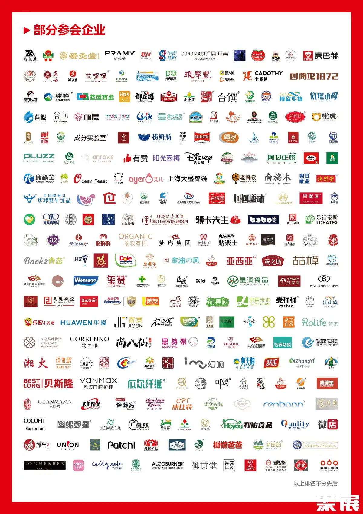 知名参展企业:马来西亚SVO、WELLOUS、马来西亚CRESTHILL、韩国Fromula of beauty、韩国DIDINIKA锅具、韩国KISMILE、韩国DERMAFIRM、日本LSIX6、新加坡荣和堂、日本金之岛、台湾正光制药、瑞士康俪美、新西兰NUXTEN、美国CROWNPRO、加拿大Cygne royal Canada、台湾翔宇生医、多娜维拉、同德集团、娃哈哈营养快乐、健全、弗洋、香港肽科、天津尚美、九易堂、尚善百草、婴米乐、巅峰燕云、中健禾美、55LIKE、养生天下、维思利、七木枕、天心云、赫漾、慎德堂、善道堂、青云山药业、GOJOY、EASELIFE、百盛蓝莓、佰鸿再生医学集团、自然衡、猴哥食品、国润九合琦礼、九和堂、隐龄、SKYFLAG、幽倩、小象莫贝、亿丹生物、贝甄坊、唯团、呀团、十趣团、MY自家店、优聚惠品、随心团、单创ABM、黑龙江商务厅展团等知名品牌参展。