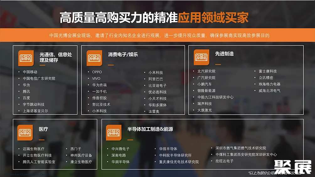 作为亚太地区极具影响力的红外技术专业展览会。深圳红外技术及应用展CIOE已成为众多企业市场拓展、品牌推广的首选平台;更是为业内人士提供了寻找新技术及新产品、了解市场先机的一站式商贸、技术及学术交流的专业平台。(本文内容版权归属聚展所有,未经同意,禁止转发)