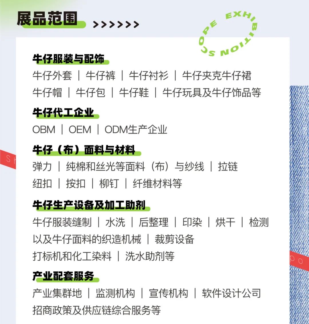 上海国际牛仔产业展览会展品范围:
