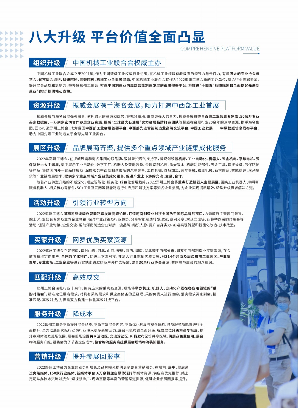 郑州国际机床展览会(CZME)是中西部成交额最大、行业影响力的品牌机床展览会。由中国机械工程学会举办。促进中部工业装备领域发展,引进新设备、新技术,振兴中部区域装备制造技术,提升当地工业技术的创新能力,同时为参展商建立了一个以交流、销售为主的贸易平台。