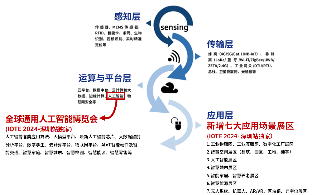 “AIoT+X,释放数字经济潜力”是IOTE物联网展的2024主题。首先,AIoT+X,代表随着全新的AI技术融合IoT,将以科技的力量,带来更多可能性和机遇;而X,则是在数字经济时代背景下,进行智能化、网联化升级的千行百业。如今,通过AIoT赋能,数字经济潜力将在各行各业得到充分释放。