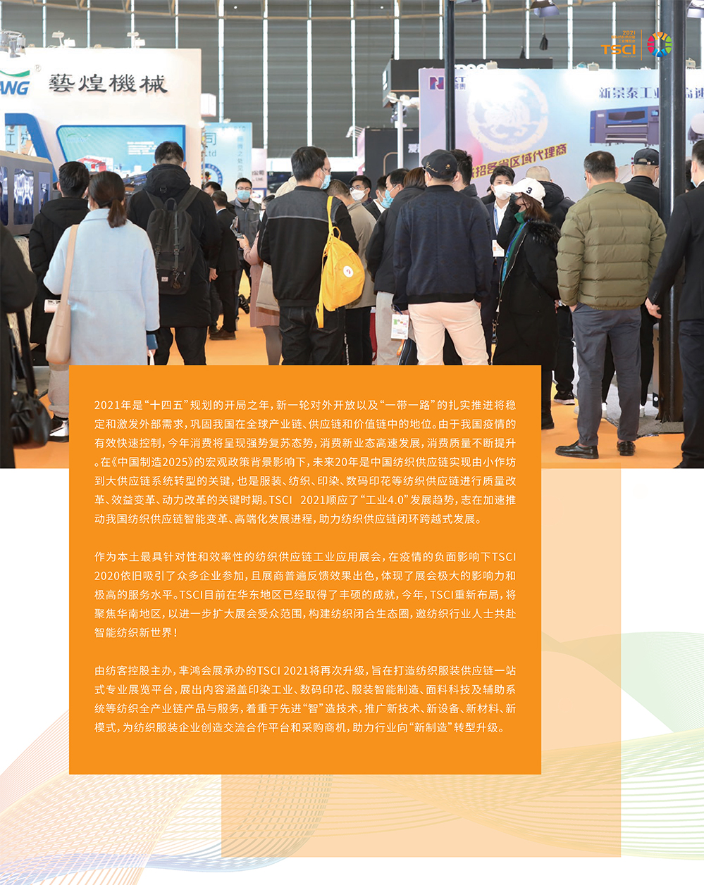 杭州服装电商展(TSCI)是纺织服装产业互联网研究院、纺客控股共同举办。聚集和展示与服装智能制造生态圈相关的一系列解决方案和应用案例,致力于推动中国服装智能制造的快速发展,为行业提供一个更专业、更全面的交流、交易平台。