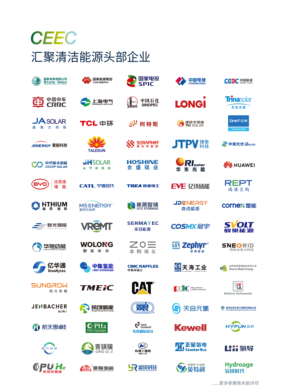 中国北京国际清洁能源博览会CEEC得到了国家主管部门的高度认可和国家电网、南方电网、华能集团、大唐集团、华电集团、国家能源集团、国家电投集团、三峡集团、中核集团、中广核集团、中国电建集团、中国能建集团以及比亚迪、隆基股份、天合光能、晶澳太阳能、正泰新能源等电力央(国)企和新能源领军制造企业的大力支持。