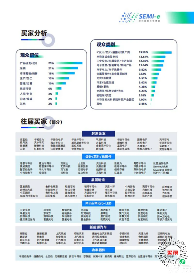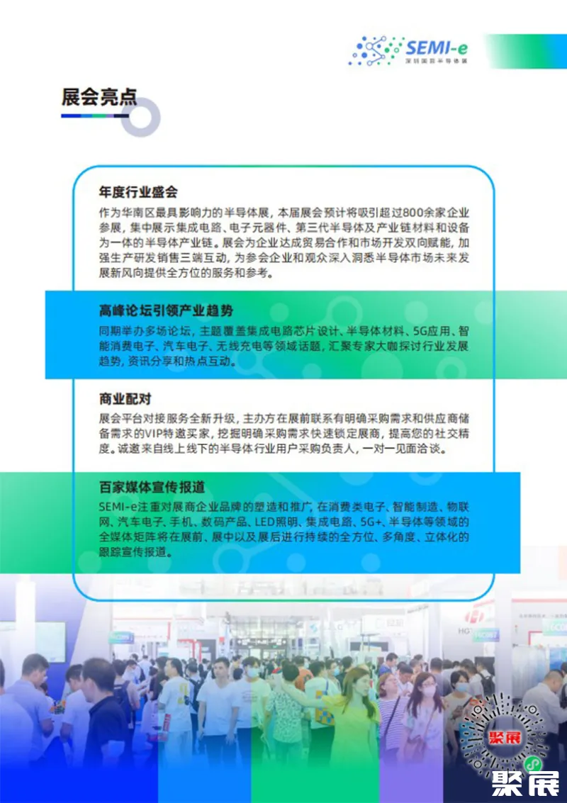 深圳国际半导体展(SEMI-e)多年来深耕半导体展会领域,已发展成为华南最具影响力和专业性的重要展会平台。在这里,您将有机会与行业内的领袖人物、技术专家以及来自世界各地的专业观众进行深入交流,共同探讨行业的发展趋势和未来机遇。